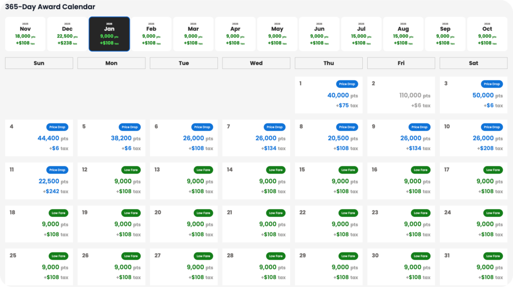 Award availability moves fast. With Premium, you can search an entire 8-day window in one view. It gives you more chances to find seats without running single-day searches one by one.